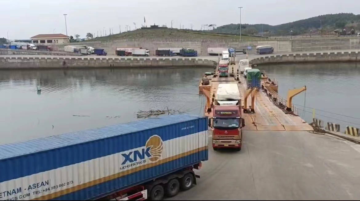 2022年12月恢复冷链进口业务后繁忙的东兴互市区浮桥通道