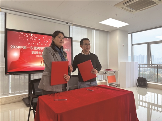 近日,2024中国—东盟跨境数字贸易服务马来西亚跨境电商专场沙龙在南宁举行,参会的驻邕高校、跨境电商企业分享了跨境直播经验,中马相关领域企业、组织还签订合作协议,进一步扩大和深化企业间跨境贸易合作。本次活动是中国—东盟跨境数字贸易服务基地2024年首场活动。