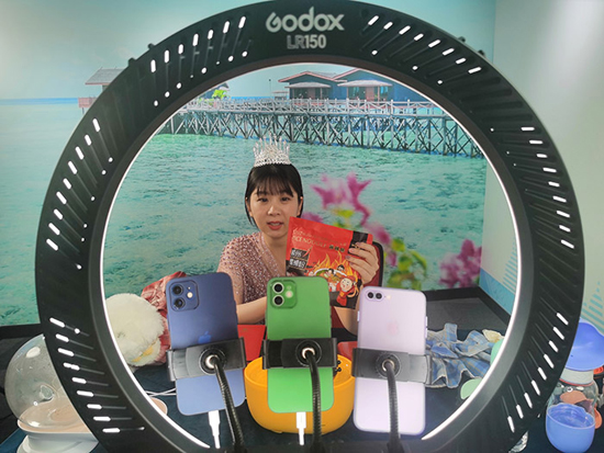 “电商+直播”的潮流同样吹到了中越边境。在广西凭祥跨境电商直播基地的直播间里,主播们正使用不同语言面对手机镜头推介商品,而在手机的另一头,彩妆、服饰、小家电等国内优质产品占据海外消费者购物车。
