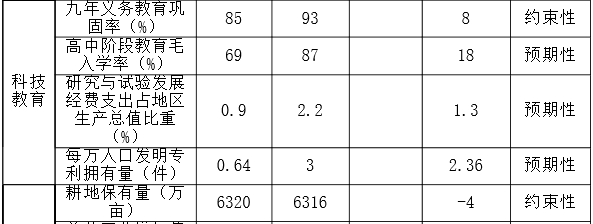 ——科技教育发展明显加快。九年义务教育巩固率提高8个百分点,高中阶段教育毛入学率提高18个百分点。研究与试验发展经费支出占地区生产总值比重达到2.2%,每万人口发明专利拥有量提高到3件。