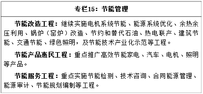 合理控制能源消费总量,提高能源利用效率。加强固定资产投资项目节能评估和审查,抑制高耗能产业过快增长。加强重点用能单位节能,大力推广先进节能技术和产品,在工业、建筑、交通运输、公共机构等领域实施重点节能工程,在各类工业园区推广热电联产和余热余压利用。加快推行合同能源管理和电力需求侧管理,完善能效标识制度、节能产品认证制度和节能产品政府强制采购制度,严格执行主要耗能产品能耗限额和产品能效标准。加强节能能力建设,完善节能管理支撑体系,扶持壮大节能服务产业。强化节能目标责任考核,完善节能法规和政策。开展企业节能低碳行动、绿色建筑行动和节能减排全民行动。
