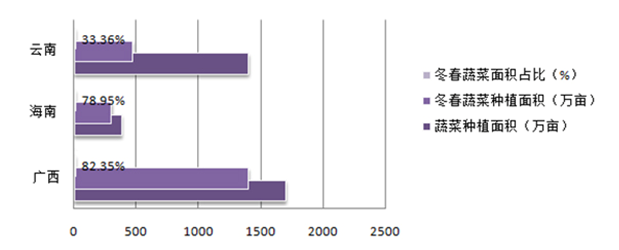 图1-1 2014年我国“南菜北运”三个试点省(区)冬春蔬菜种植面积