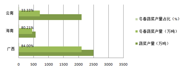 图1-2 2014年我国“南菜北运”三个试点省(区)冬春蔬菜产量
