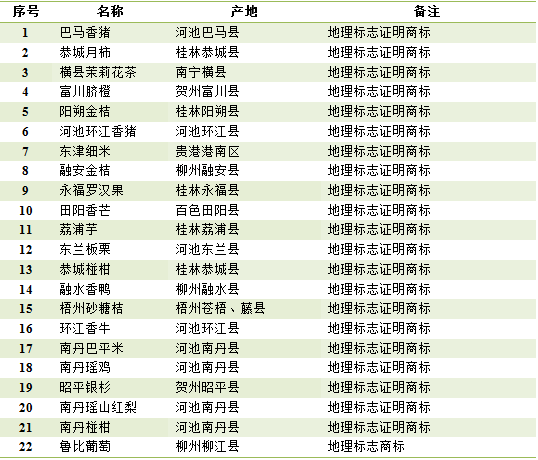 表1-1 广西现有地理标志证明商标