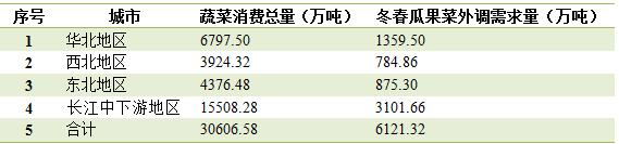 2025年三北地区和长江中下游地区冬春蔬菜外调需求量预测
