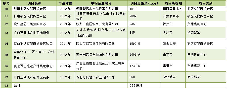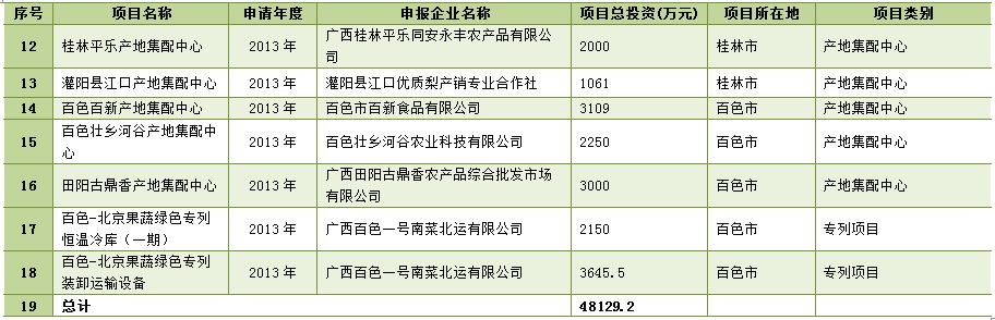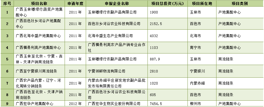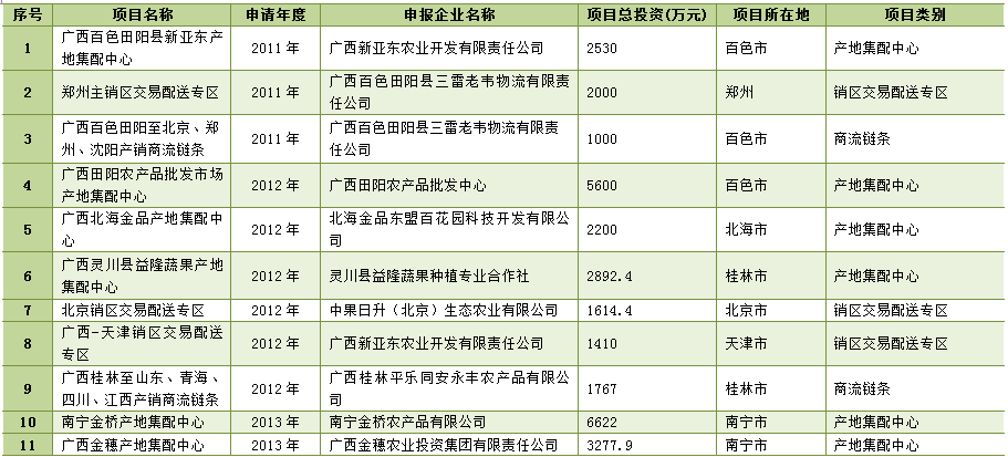 广西“南菜北运”农产品现代流通综合试点已建成项目