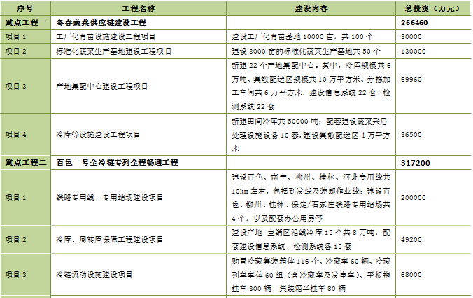 2025年 广西“南菜北运”专项规划重大工程项目表