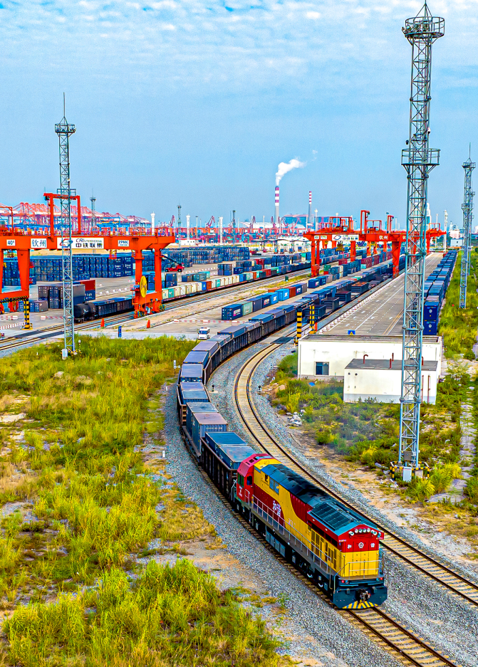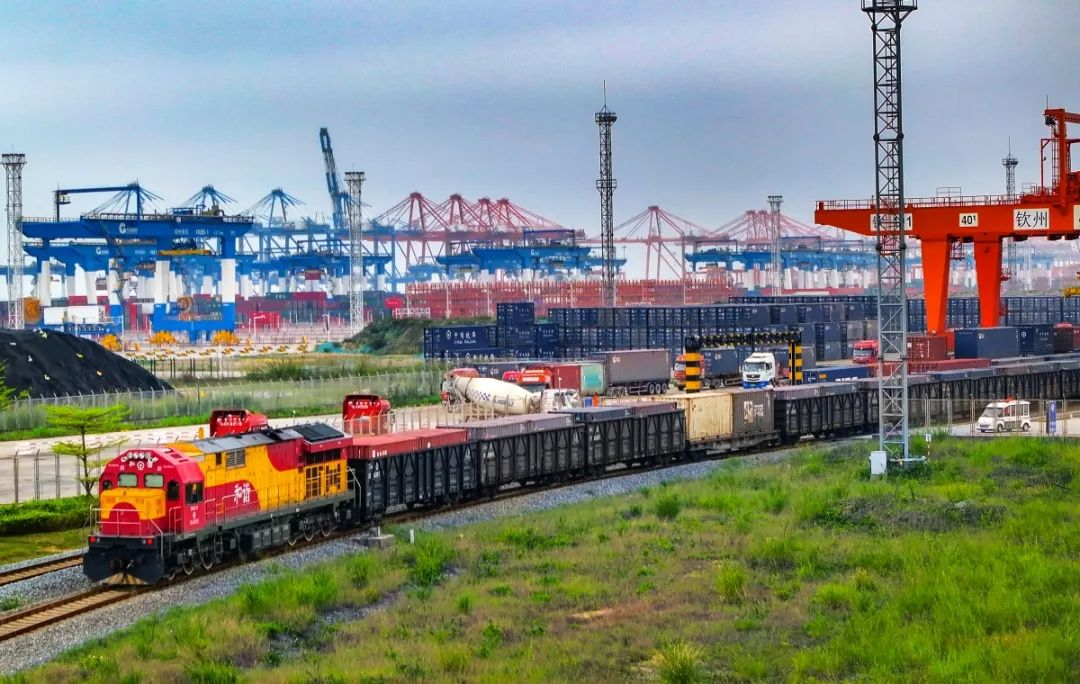 满载货物的铁海联运班列缓缓驶出钦州港。