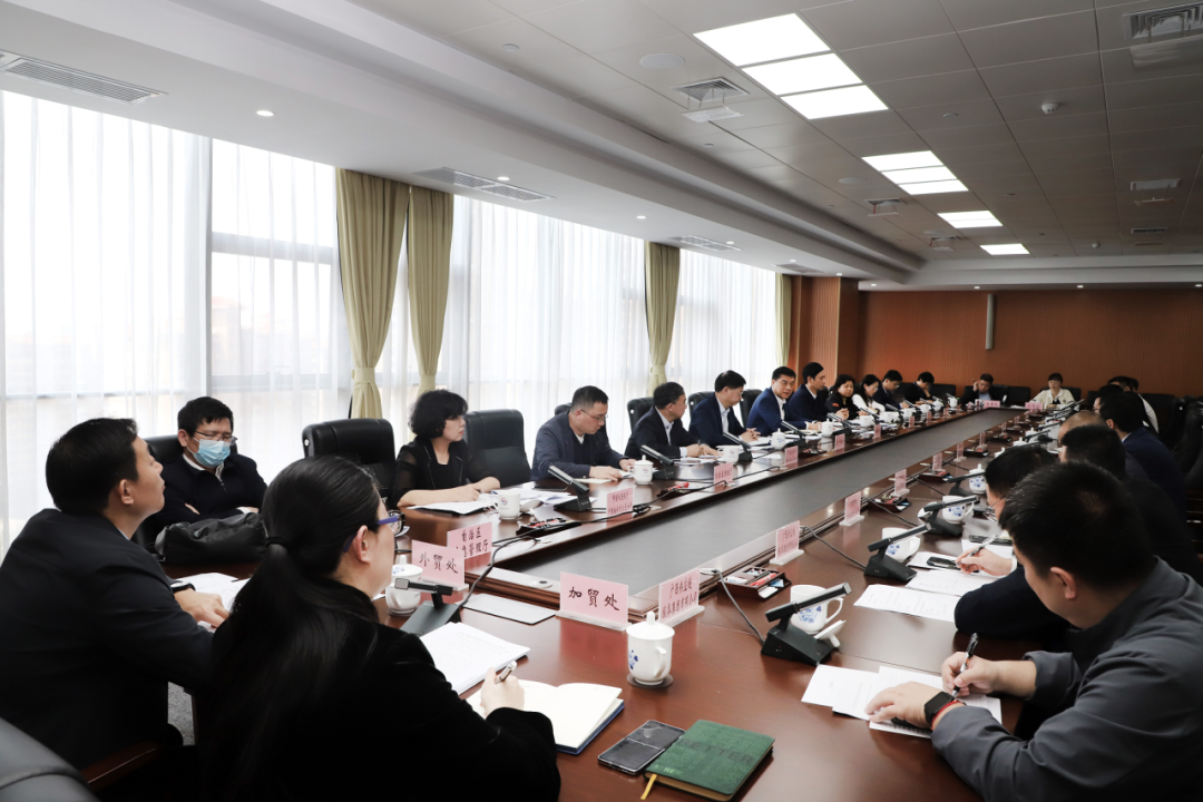 自治区商务厅党组成员、副厅长李硕主持会议;自治区财政厅、自治区应急管理厅、南宁海关、自治区人力资源和社会保障厅、自治区市场监管局、广西税务局、广西金融监管局,广西北部湾国际港务集团、中国人民银行广西壮族自治区分行、中国铁路南宁局集团有限公司分别回应发言。