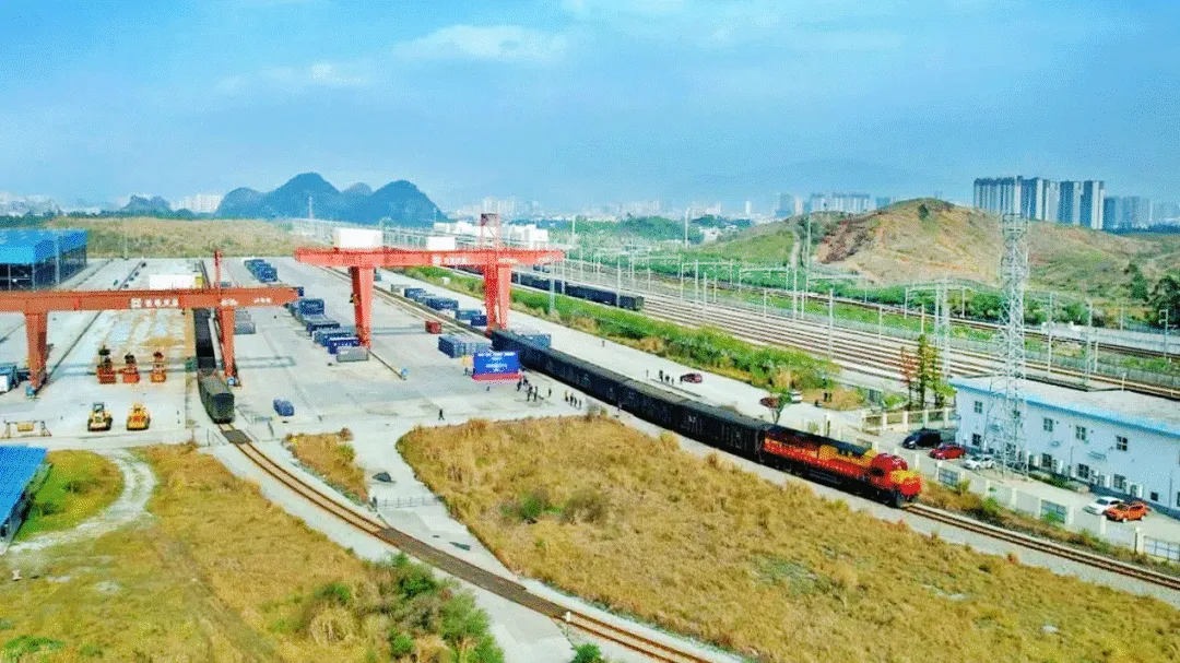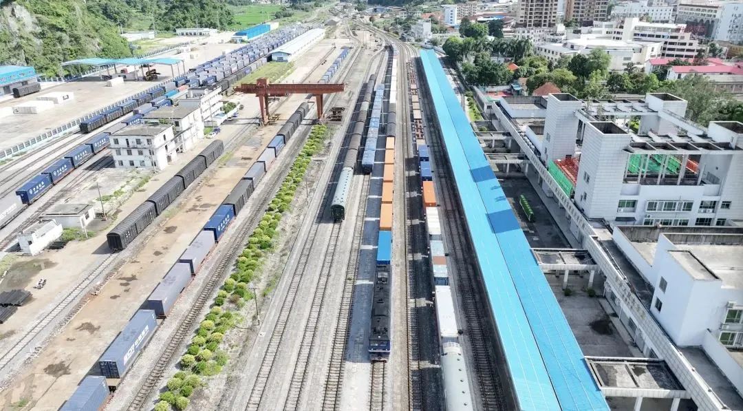 6月9日下午,一列运载174吨东南亚榴莲、山竹等水果的中越跨境货物列车自越南同登站抵达中国凭祥站,供应国内水果市场。动图图源公众号@广西外事 港澳事务