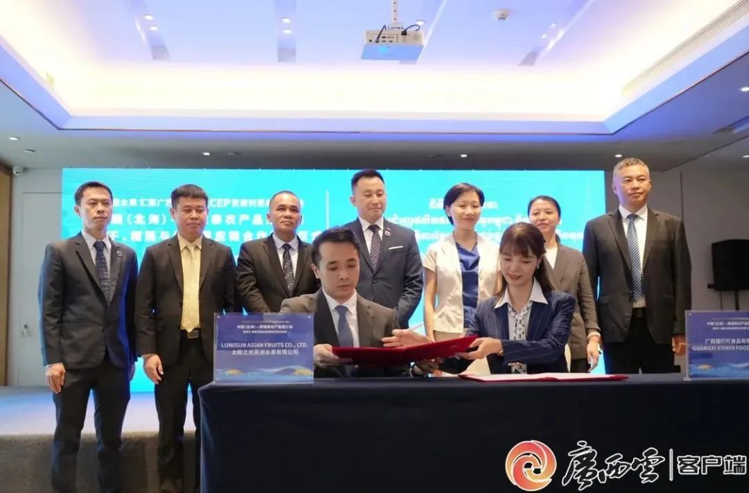 6月6日,中国(北海)—柬埔寨农产品推介会暨果干、榴莲与纸业供应链合作签约仪式在广西北海市举行,广西企业与柬埔寨企业签订贸易合作框架协议,货值总额超16亿元。
