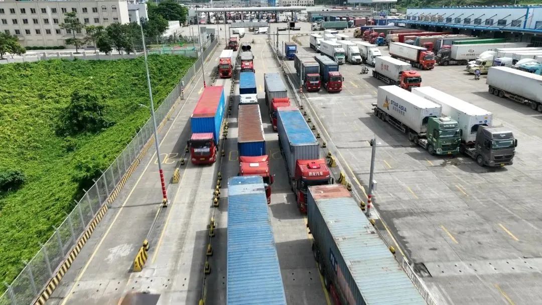 在友谊关,一辆辆从越南入境、满载水果的货车驶入中国—东盟(崇左)水果交易中心。