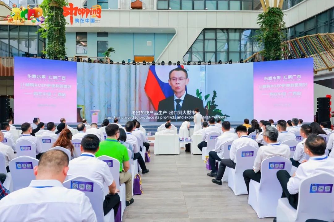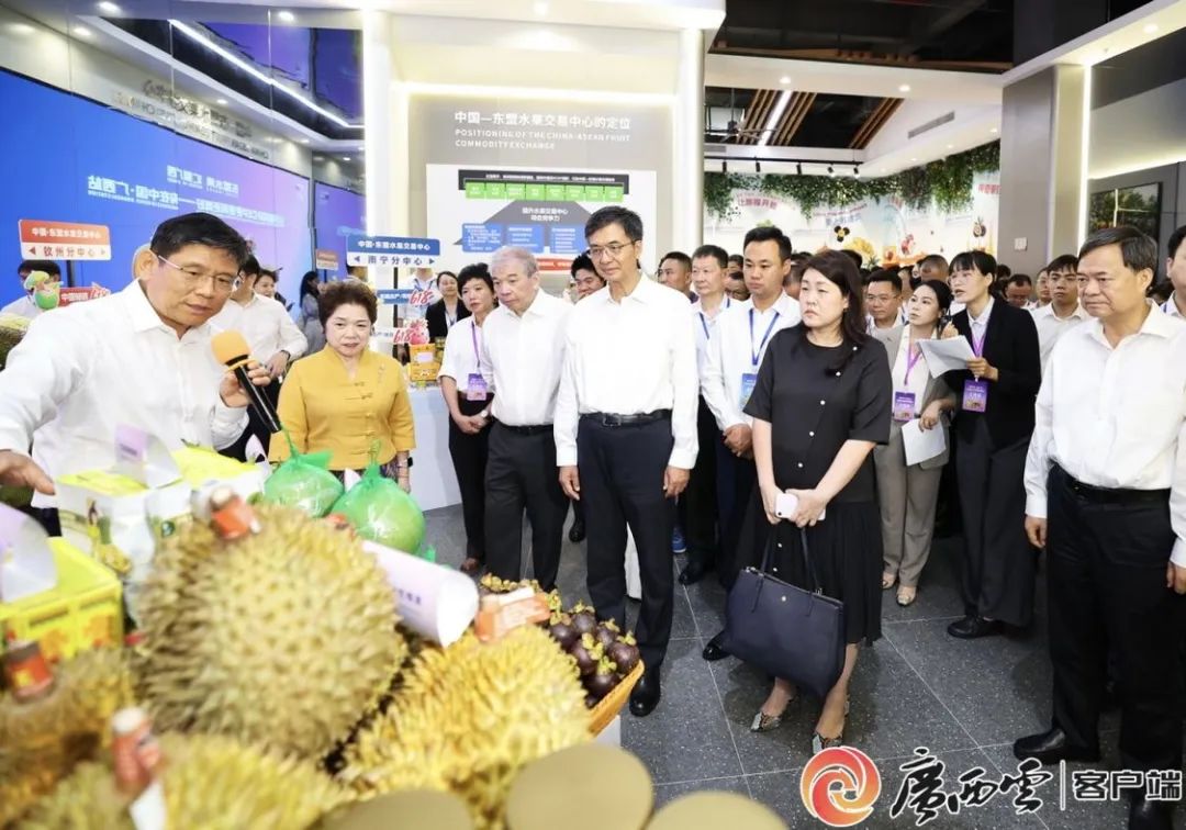 仲夏八桂,瓜果飘香、生机盎然。6月18日,“东盟水果 汇聚广西 让畅购RCEP更便利更美好——购在中国·广西站”活动在中国—东盟特色商品汇聚中心启动。自治区党委书记、自治区人大常委会主任陈刚出席活动并致辞。商务部副部长盛秋平,柬埔寨商业部国务秘书盛兴博拉视频致辞。