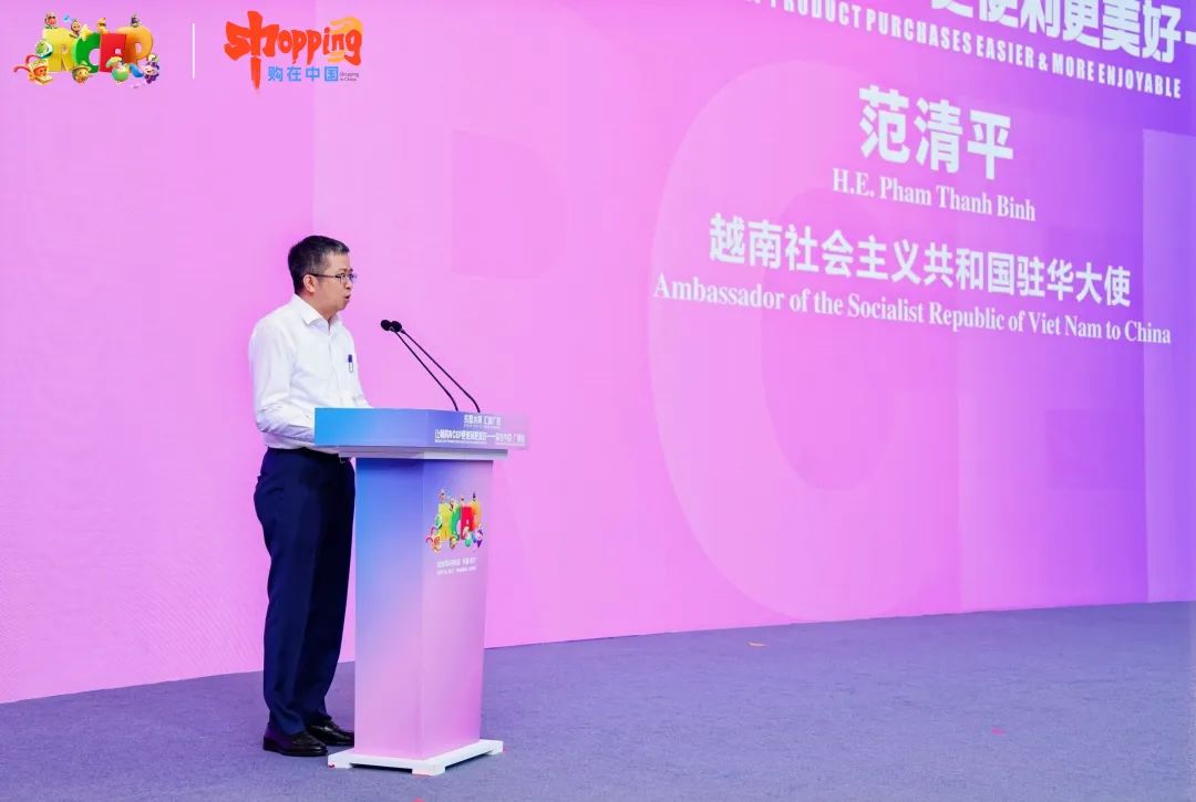 ▲盛秋平表示,今年以来,商务部积极会同相关部门,推动商品消费提档升级,促进服务消费提质扩容,推动消费平稳增长,为经济回升向好提供有力支撑。广西是我国推进高水平对外开放、促进同东盟合作的重要窗口。商务部将积极支持广西发挥独特区位优势,促进更多东盟好物、RCEP优品进入中国大市场。同时,热忱欢迎东盟国家、RCEP国家企业来华开展经贸合作,欢迎相关国家居民到访广西、到访中国,购好物、品美食、赏美景,共同感受“购在中国”的独特魅力。