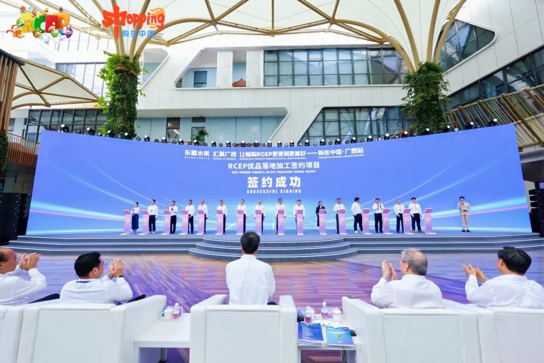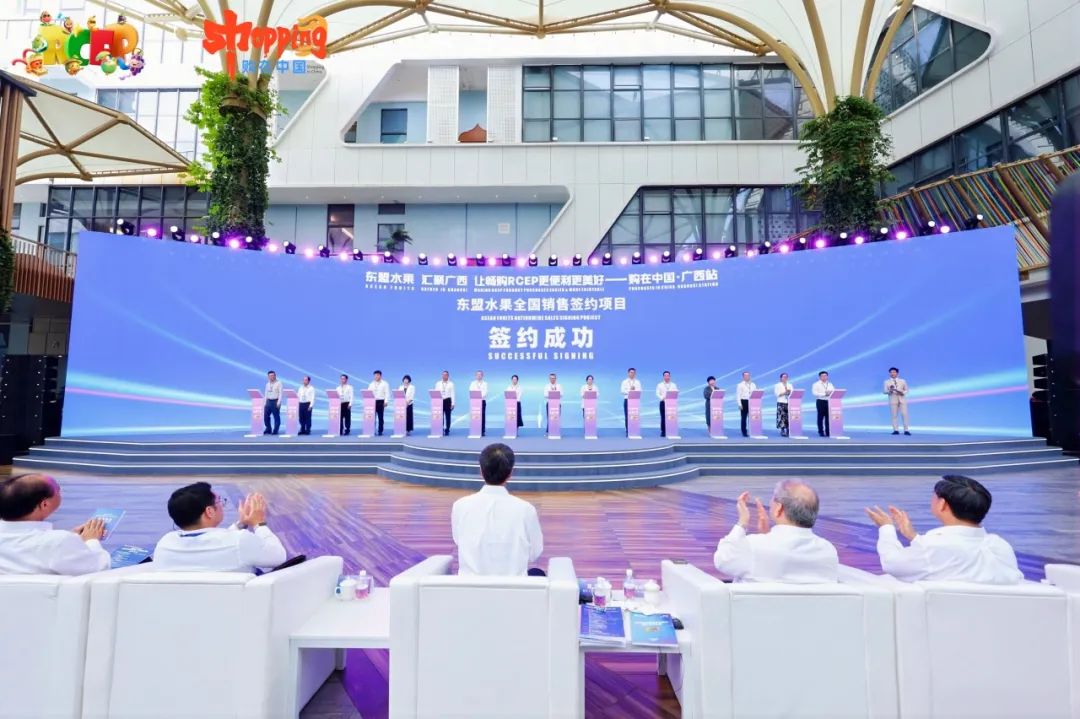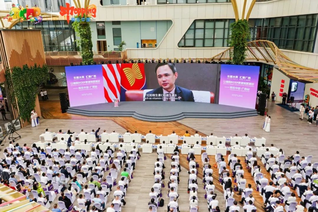 ▲6月18日,“东盟水果 汇聚广西 让畅购RCEP更便利更美好——购在中国·广西站”活动在中国—东盟特色商品汇聚中心启动。广西云-广西日报记者 邓华 摄