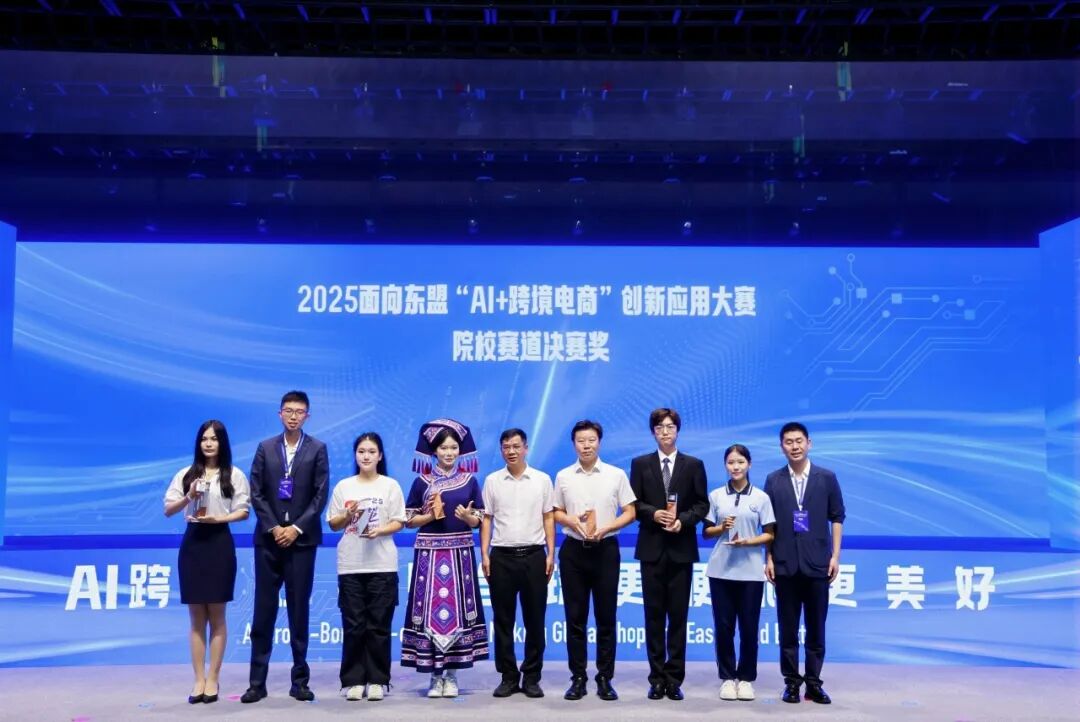 现场为2025面向东盟“AI+跨境电商”创新应用大赛获奖团队颁奖。