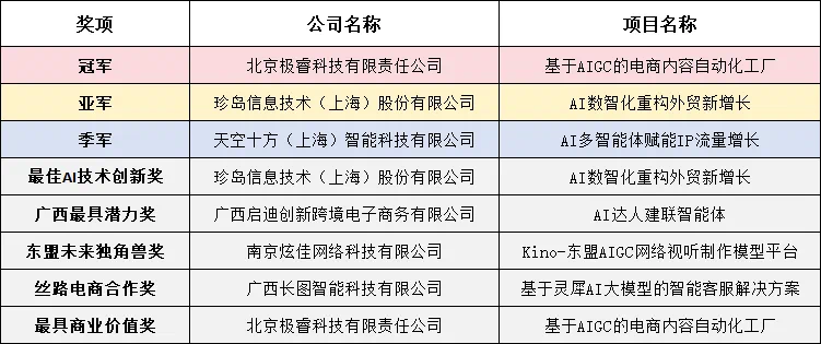 ▲2025面向东盟“AI+跨境电商”创新应用大赛社会赛道获奖名单。
