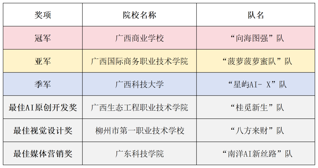 ▲2025面向东盟“AI+跨境电商”创新应用大赛院校赛道获奖名单。