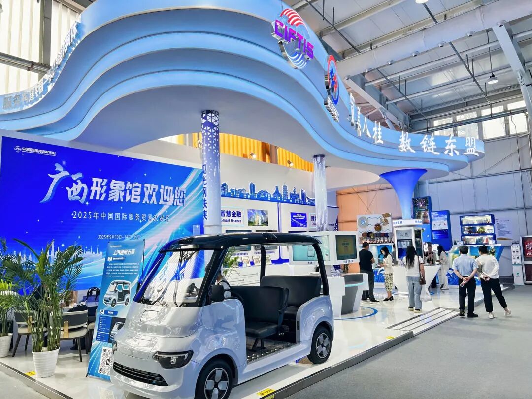 今年,广西形象馆围绕“凝心聚力建设新时代壮美广西 构筑面向东盟的人工智能合作新高地”,以“贸美八桂 数链东盟”为展示主题,馆内设四个专区,集中展现广西服务贸易在人工智能赋能下的创新成果与开放优势。