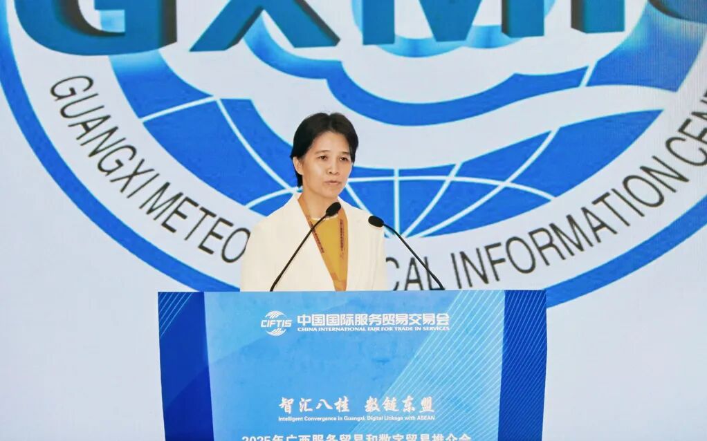 广西气象信息中心主任林健玲作经验分享:全国首个气象数据海外云节点并业务化运行,建立气象数据出境“负面清单”和广西气象云—海外云数据通道,实现数据直接持“护照”从广西自贸区“跨关”出境。