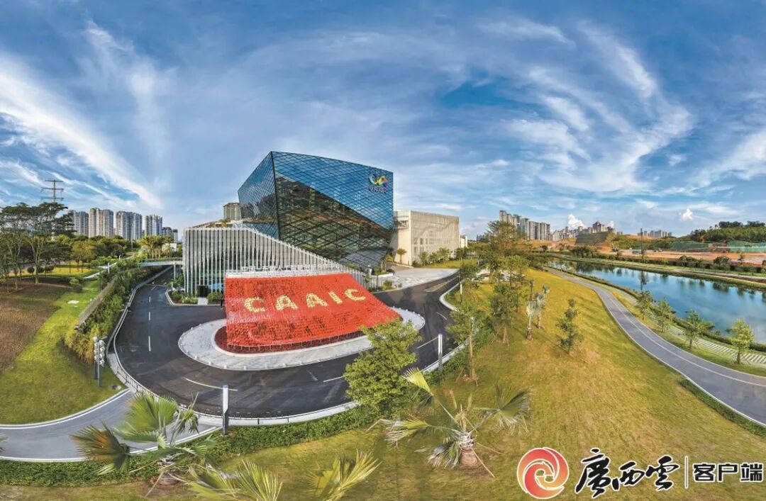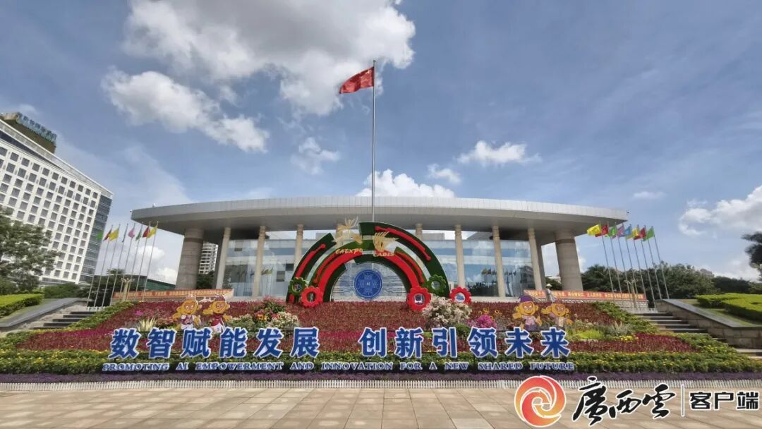 △图源视频号@新闻夜班(上)、图源公众号@南宁新闻网(中)、中国—东盟人工智能创新合作中心装扮一新迎接各国宾客。广西云-广西日报记者 周军 摄。(下)