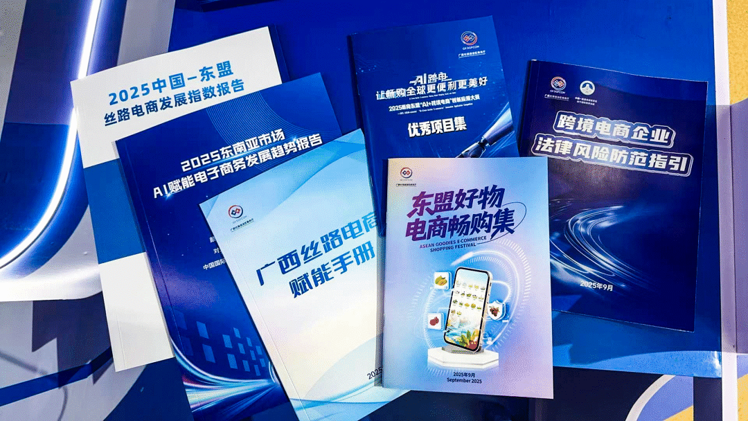 现场发布《广西丝路电商赋能手册》《跨境电商企业法律风险防范指引》《中国—东盟丝路电商发展指数报告》《2025东南亚市场AI赋能电子商务发展趋势报告》《2025面向东盟“AI+跨境电商”创新应用大赛优秀作品集》《东盟好物电商畅购集》等。