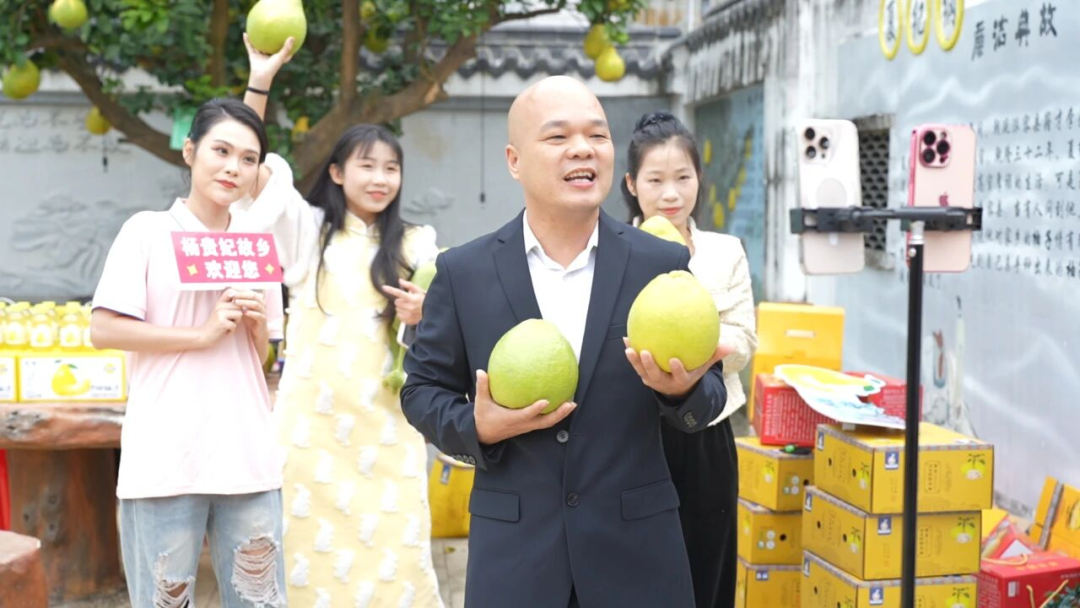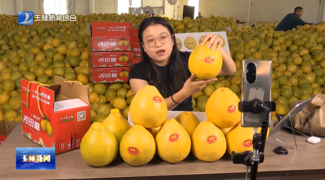 电商从业人员通过网络直播推介容县沙田柚。图源公众号@侨乡党旗红