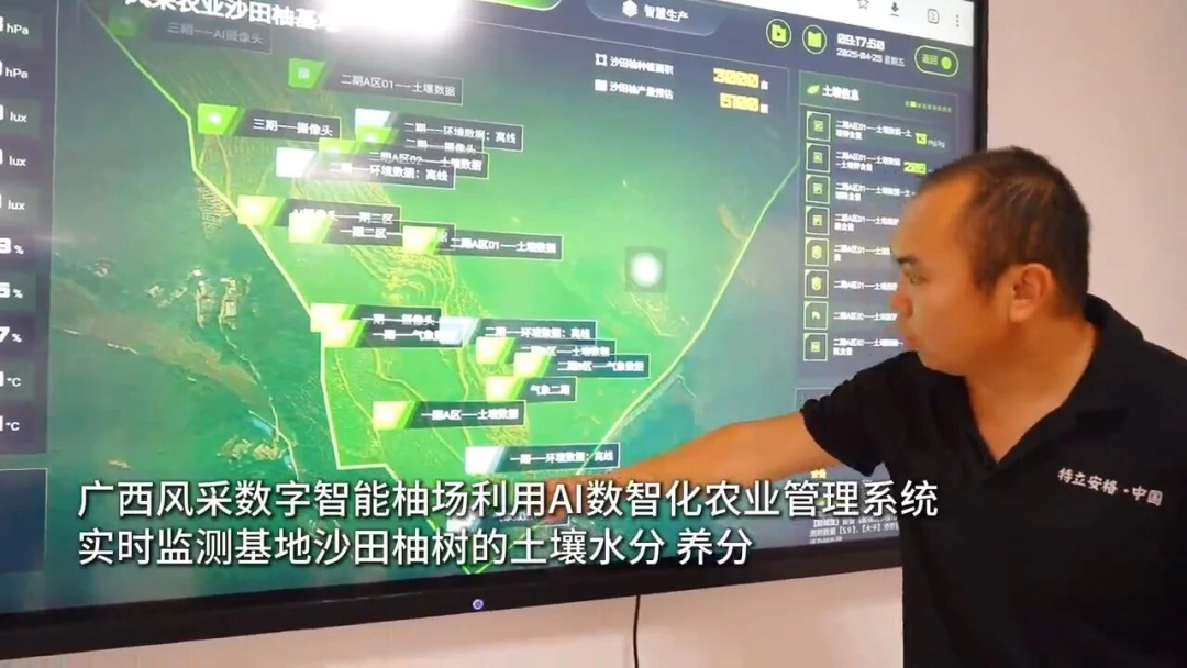 AI根据光照等参数生成管理方案,对每一株柚树由人工判断改为精准计算,节能30%以上。