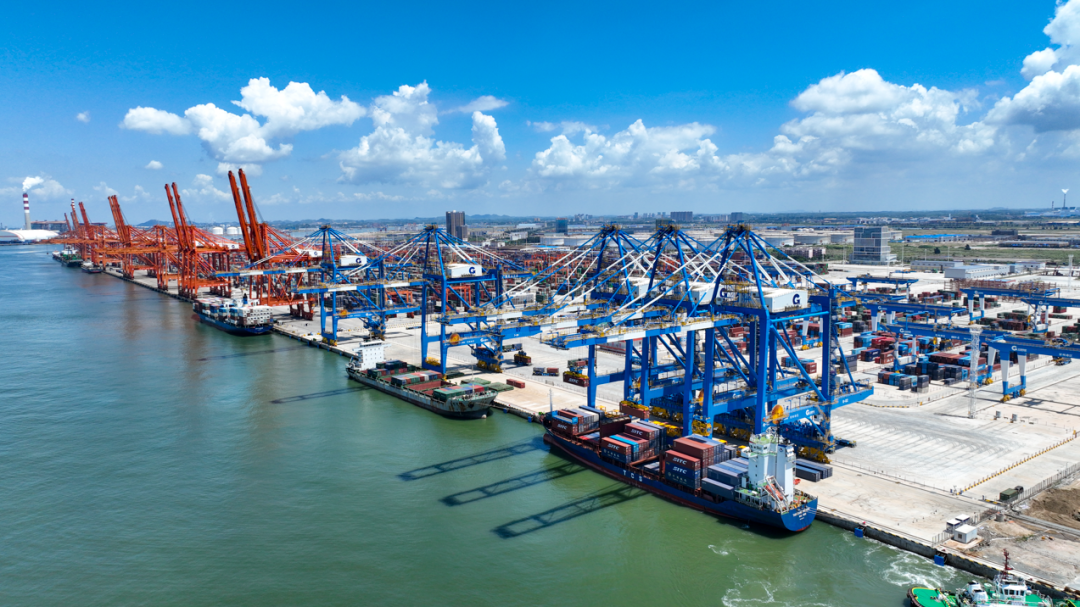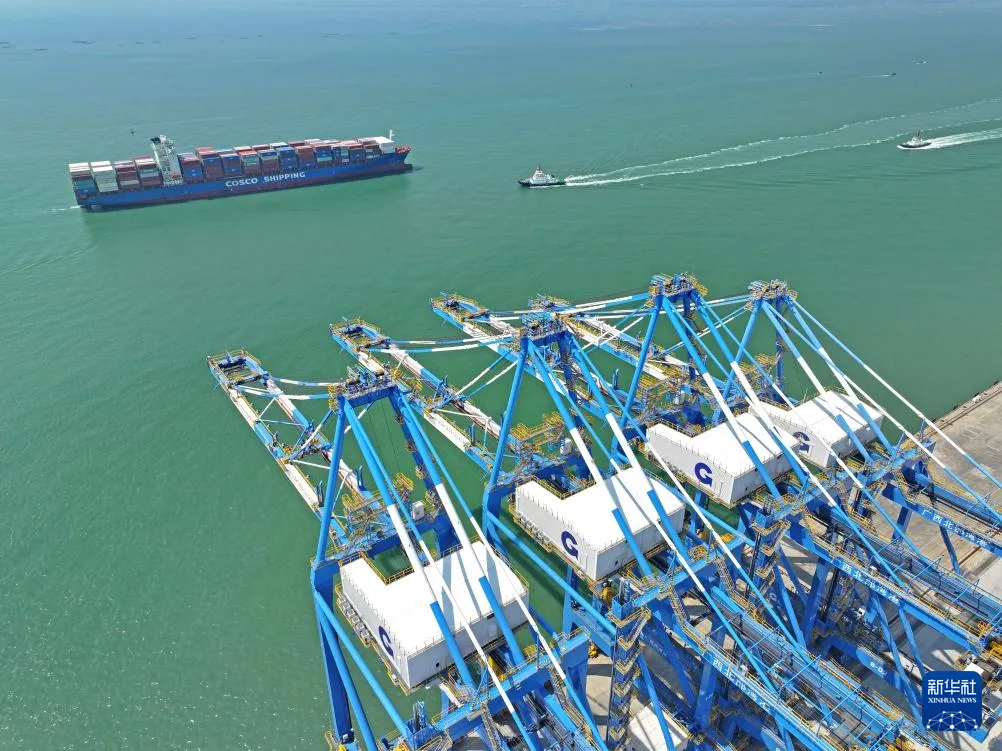 位于钦州的北部湾港自动化集装箱码头,是全球首创U型工艺布局、全国首个铁海联运自动化集装箱码头。