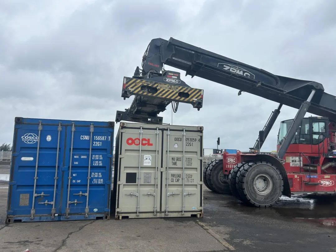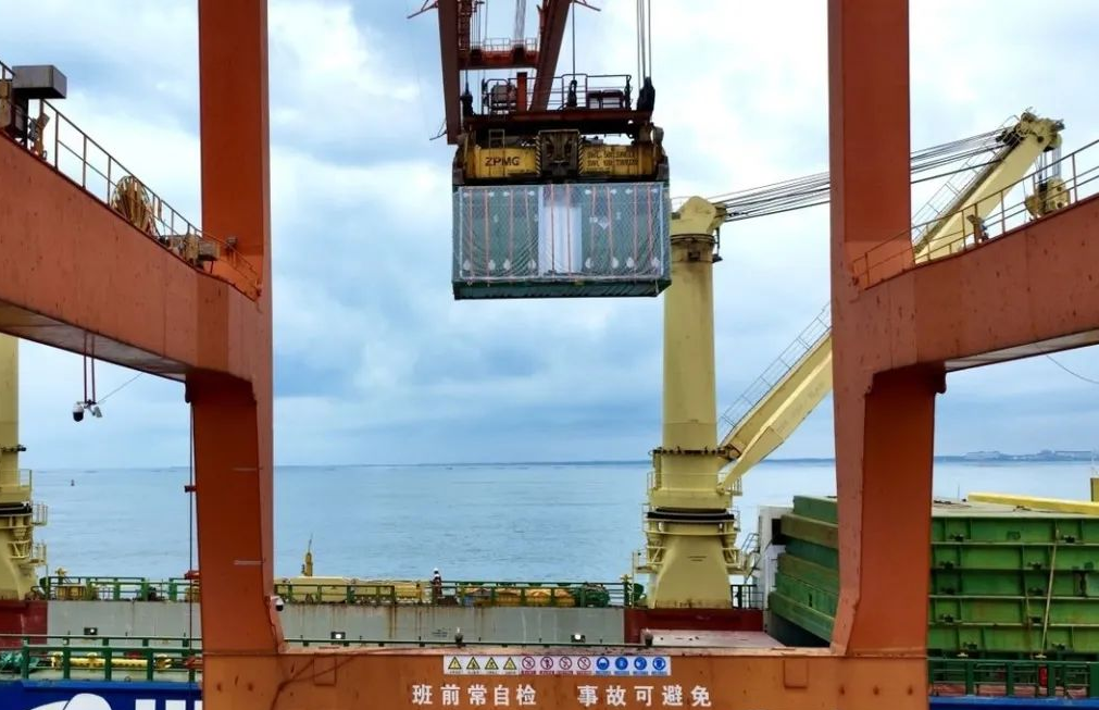 锂电池储能柜正吊装上船。陆定宽 摄。图源公众号@南宁海关发布