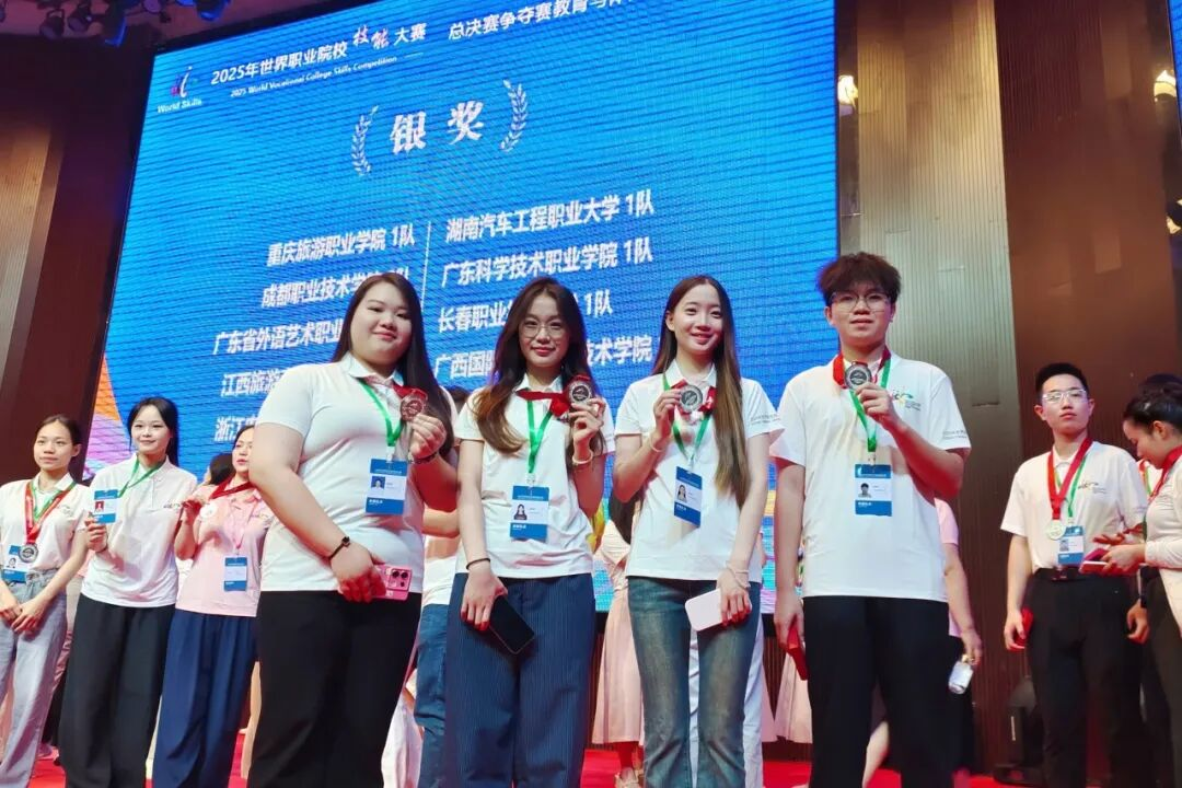 ↑应用外国语学院学生在2025年世界职业院校技能大赛总决赛争夺赛教育与体育赛道(高职组)比赛中斩获银奖。