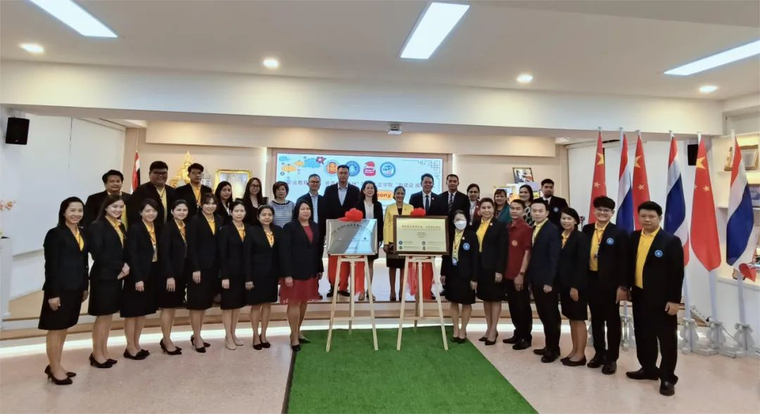 ↑2024年,中国—泰国跨境商务现代工匠学院和泰国教育部电子商务专业教育标准基地在泰国举办揭牌仪式。