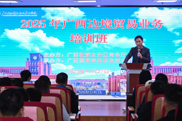 为推动边境贸易创新发展,提升边贸主体政策运用与实务操作能力,由广西壮族自治区商务厅主办、广西国际商务职业技术学院承办的“2025年广西边境贸易业务培训班”于2025年11月27日至28日在南宁举行。