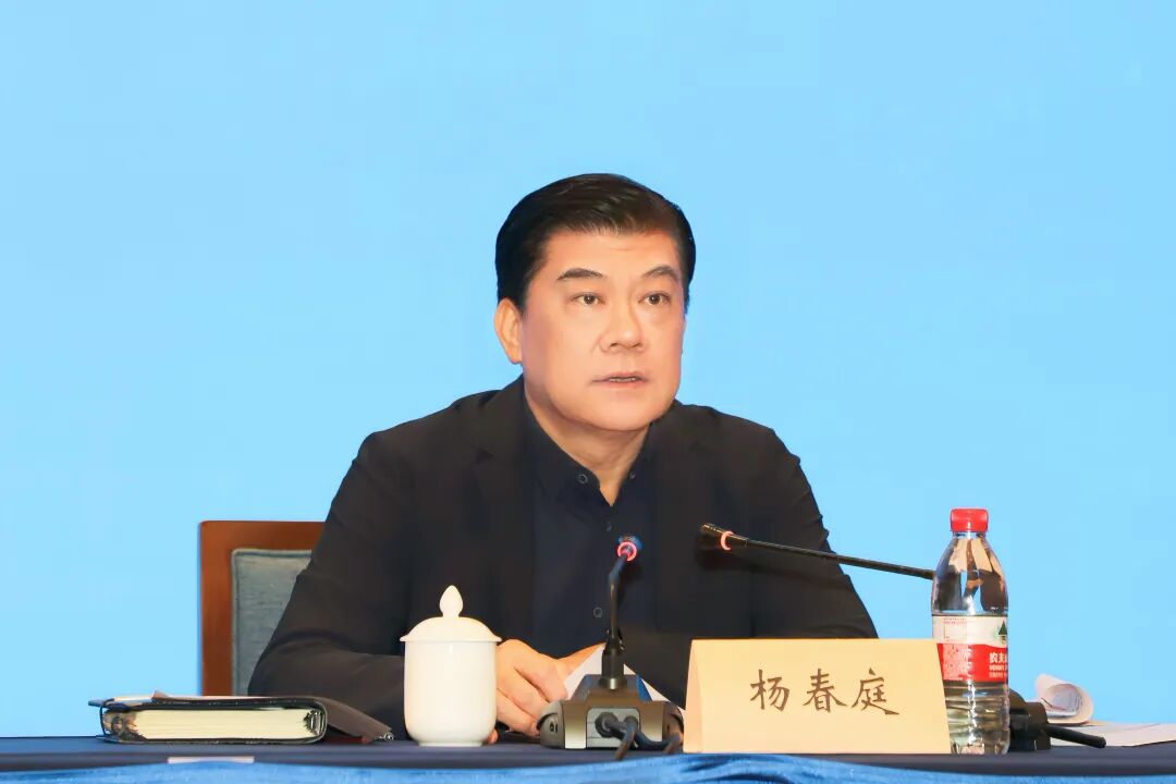 ▲自治区商务厅党组书记、厅长杨春庭出席会议并讲话。