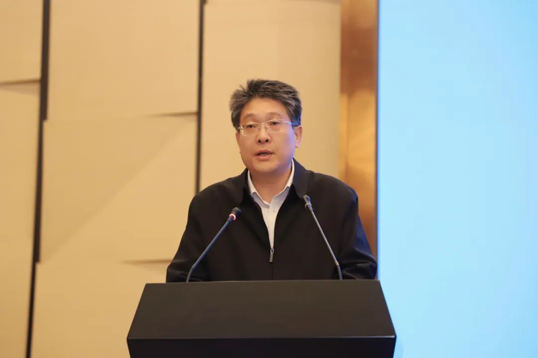 ▲自治区商务厅一级巡视员粟坚就商务综合服务工作作主题发言。