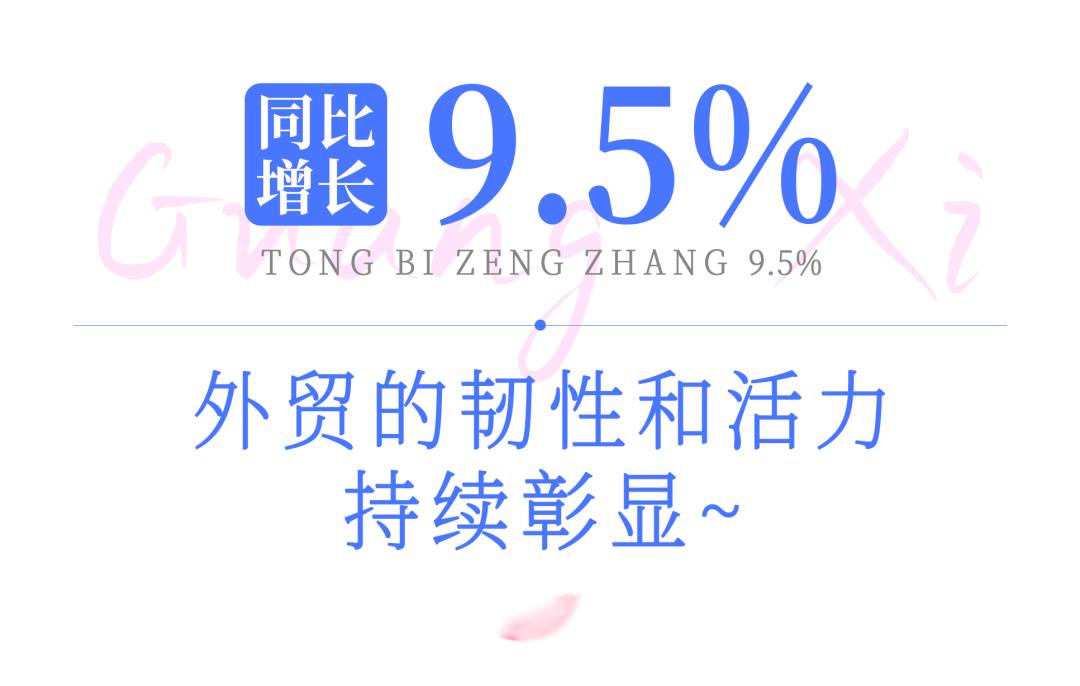 同期,广西对拉美、中东、非洲、欧盟等增速较快,同比分别增长20.5%、26.5%、24.9%、49.5%。