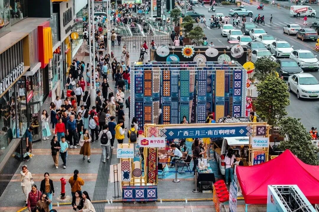 抢抓政策红利稳住信心,获“自治区级步行街”称号,通过“商家优惠、商超返券、政府补贴”多重优惠叠加举措激发消费潜力。