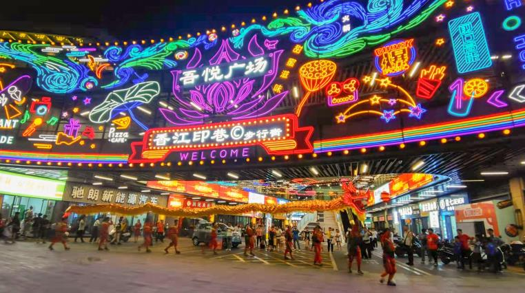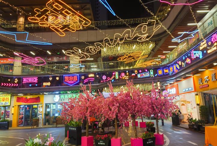 业态结构优化升级,从原来单一的传统零售业态转变为多元化文娱体验业态,文娱类商家占比达43%。创新发展了夜游、夜食、夜演、夜宴、夜购、夜娱、夜宿等七大夜间消费业态。