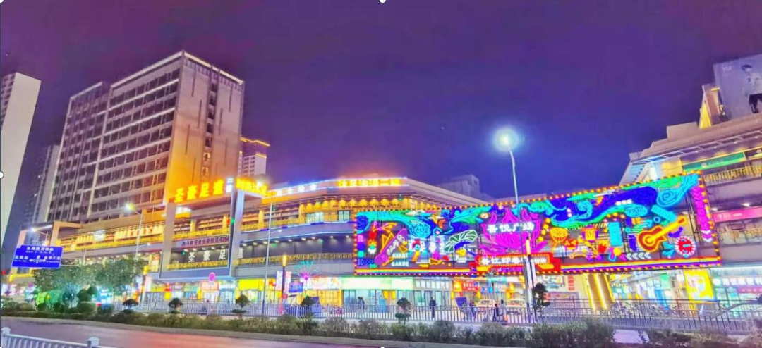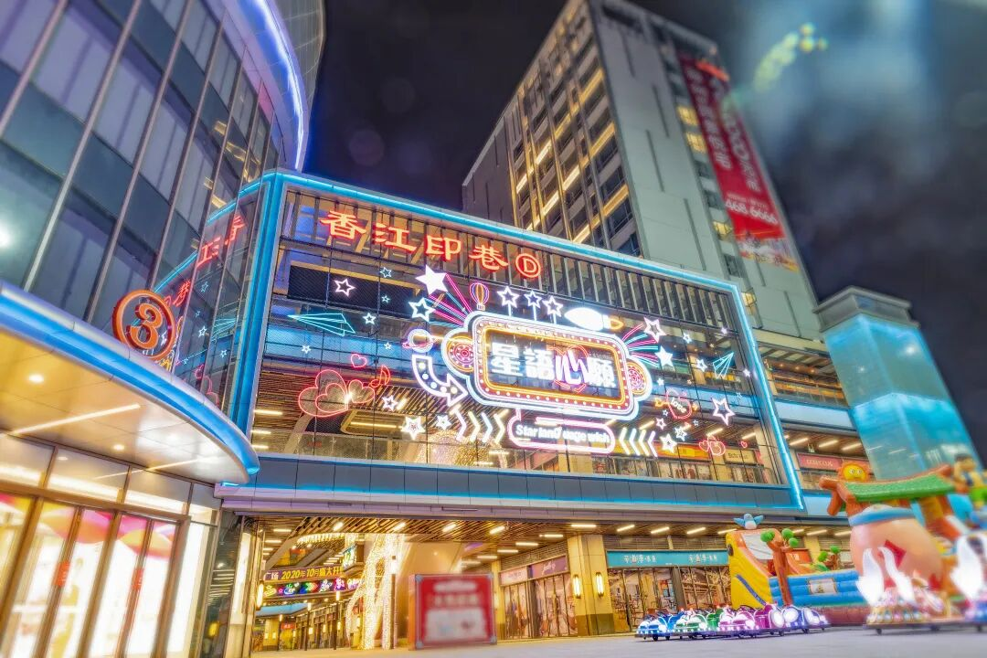 重新定位,将商场从传统购物中心转型为“贵港最具时尚潮流的都市夜间文化IP”。结合复古、港式元素,设置跑马灯、霓虹灯、大招牌等特色景观,营造沉浸式夜游体验。