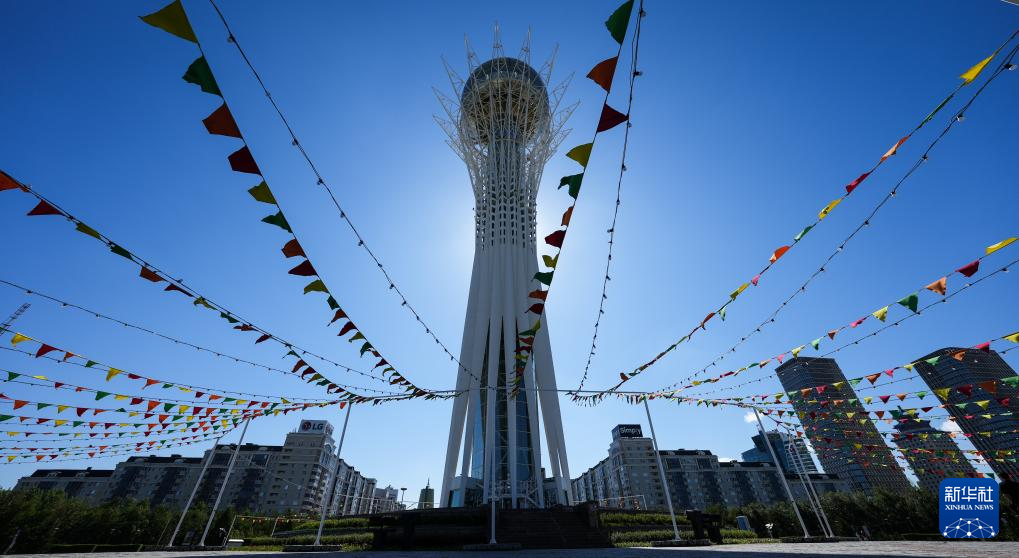 ▲哈萨克斯坦阿斯塔纳的巴伊杰列克观景塔。新华社记者 王建华 摄