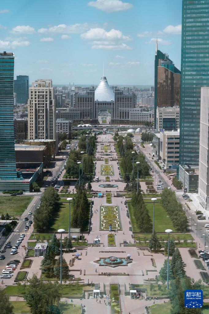 ▲阿斯塔纳的城市中轴线景观。新华社记者 虞东升摄