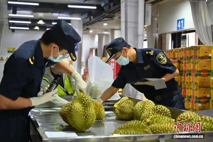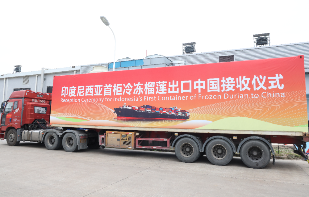 ▲印度尼西亚首柜冷冻榴莲出口中国。图源公众号@自贸试验区钦州港片区