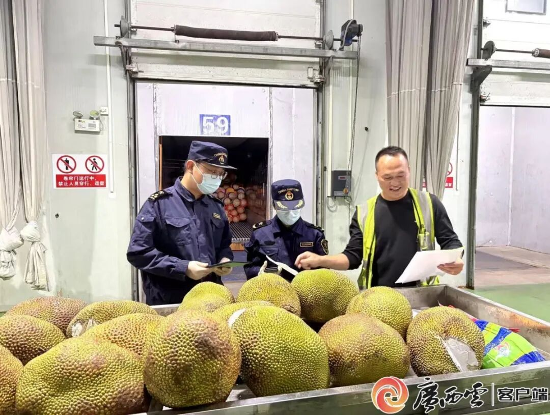 ▲广西首票越南进口冷冻榴莲肉从东兴口岸入境。图源公众号@广西东兴