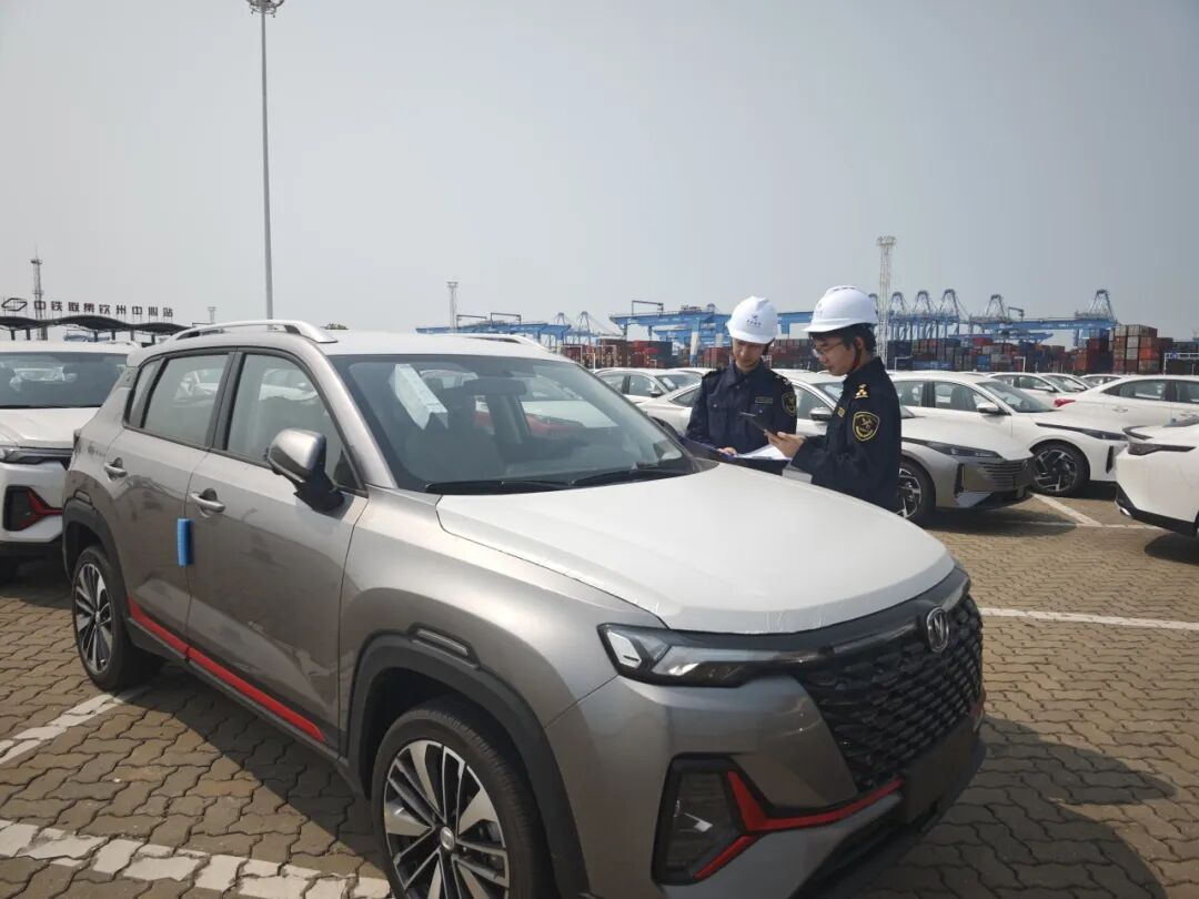 ↑钦州港海关关员对滚装船出口汽车进行现场监管。图源公众号@南宁海关发布
