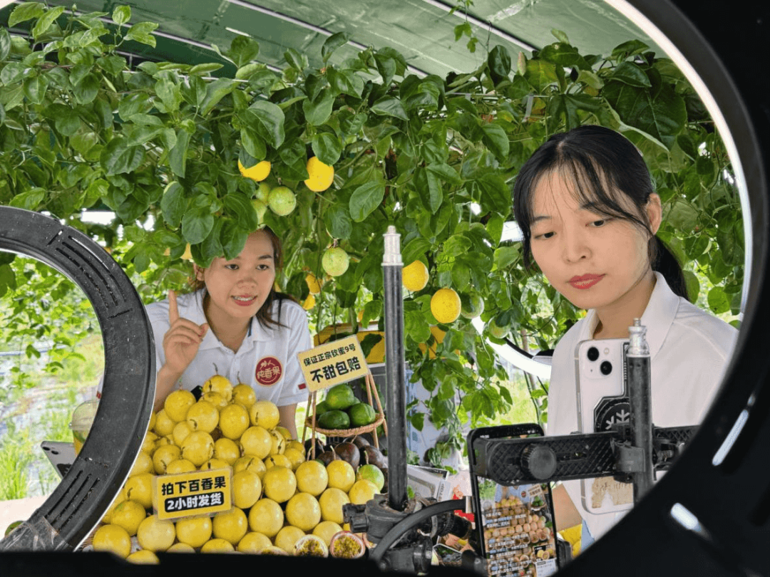 ↑主播通过电商直播间推销北流百香果。图源公众号@广西东云农业投资