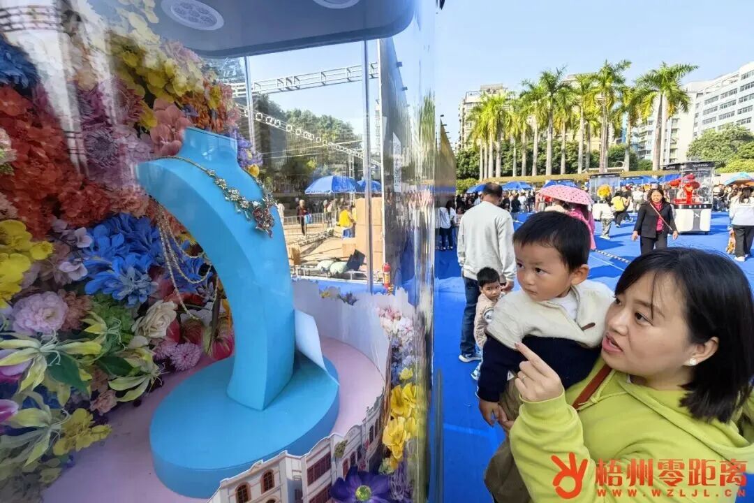 在珠宝首饰暨名特优产品展销会现场,家长带着孩子赏美丽宝石、学宝石知识。何鎏 摄。图源公众号@梧州零距离