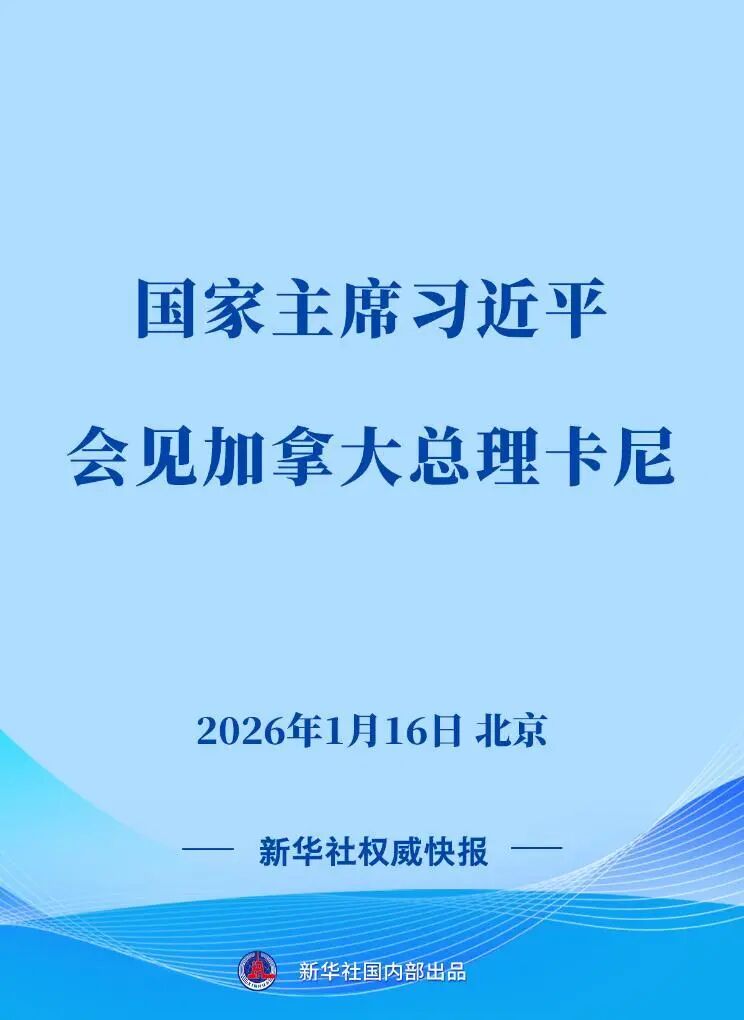 1月16日,国家主席习近平在北京会见来华进行正式访问的加拿大总理卡尼。