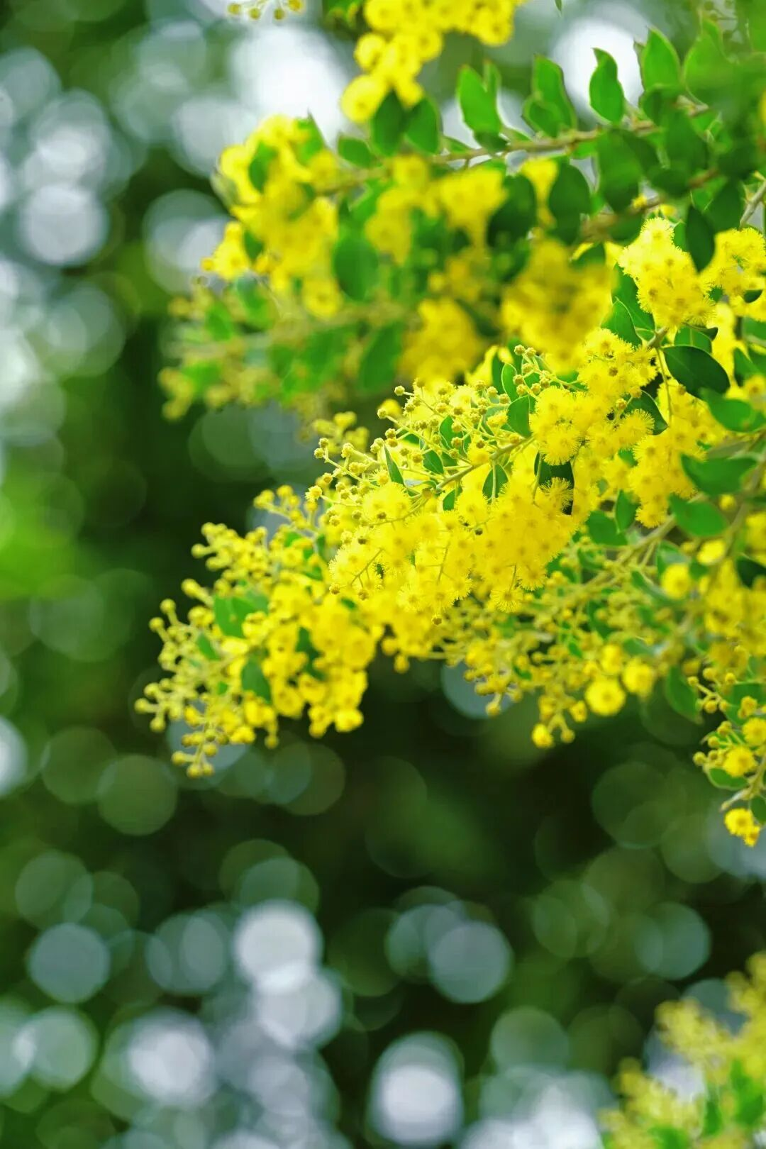 民族大道上绿树成荫。 记者 黄维业 摄(上)、青秀山银叶金合欢绽放温暖色彩。图源公众号@青秀山(下)