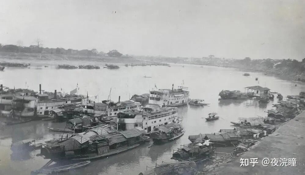 洋关码头停泊的船只和海关验货筏。图源公众号@南宁文旅
