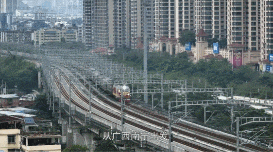 中越班列从南宁国际铁路港缓缓驶出,从南宁启程发往越南。新华社记者 陆波岸 摄